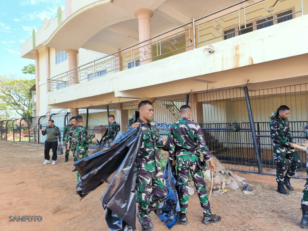 Kolaborasi TNI-Pemkot Baubau Bersihkan Stadion Betoambari